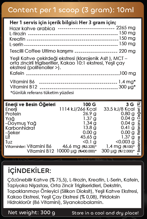100 fincan kahve (Bir porsiyon için 3 gram)